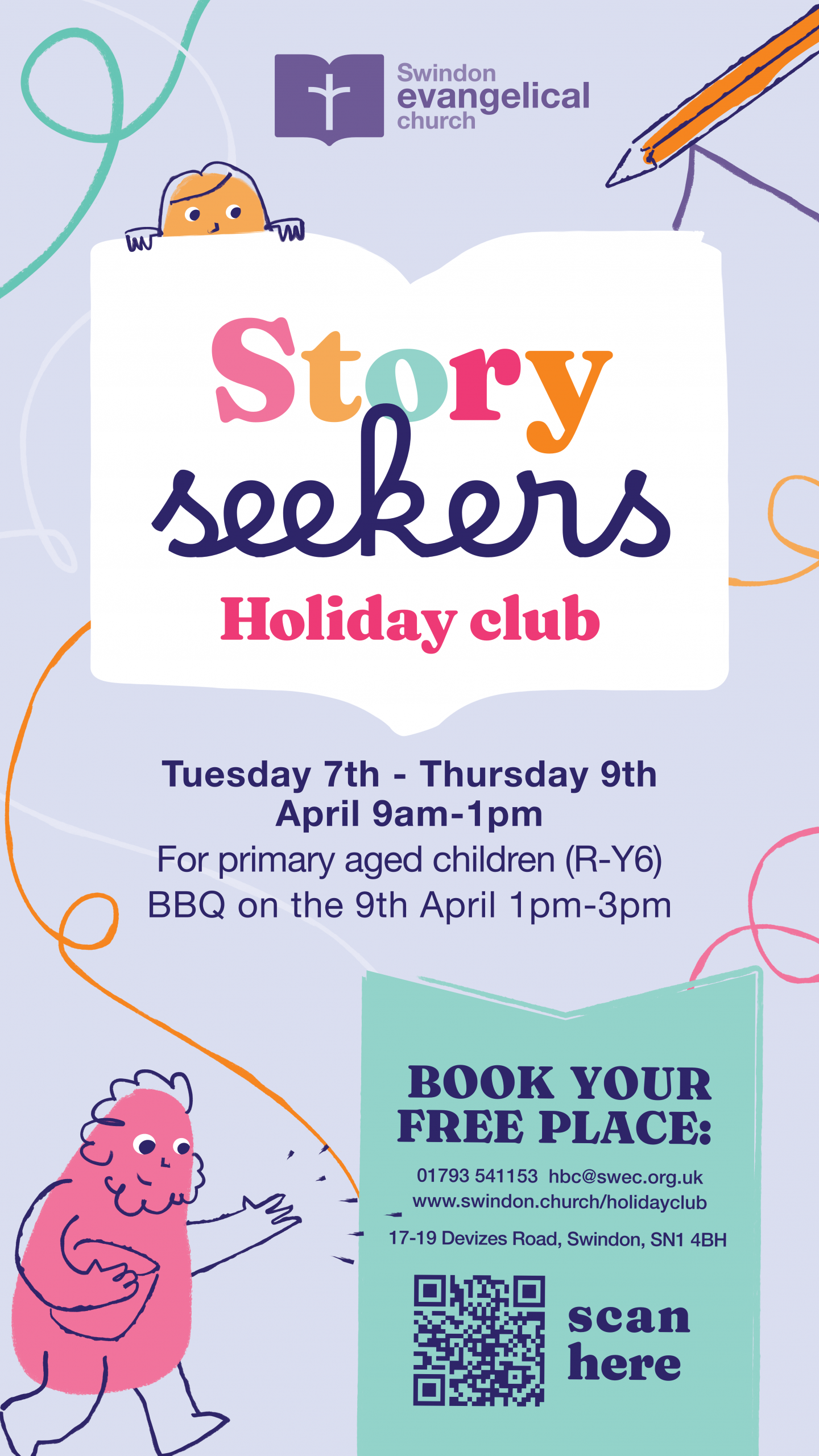 Children of Reception to Year 6 age can join us from 7th-9th April 9am-1pm for craft, games, Bible story, drama, songs and lots more. We are also holding a BBQ on the 9th April 1pm-3pm
